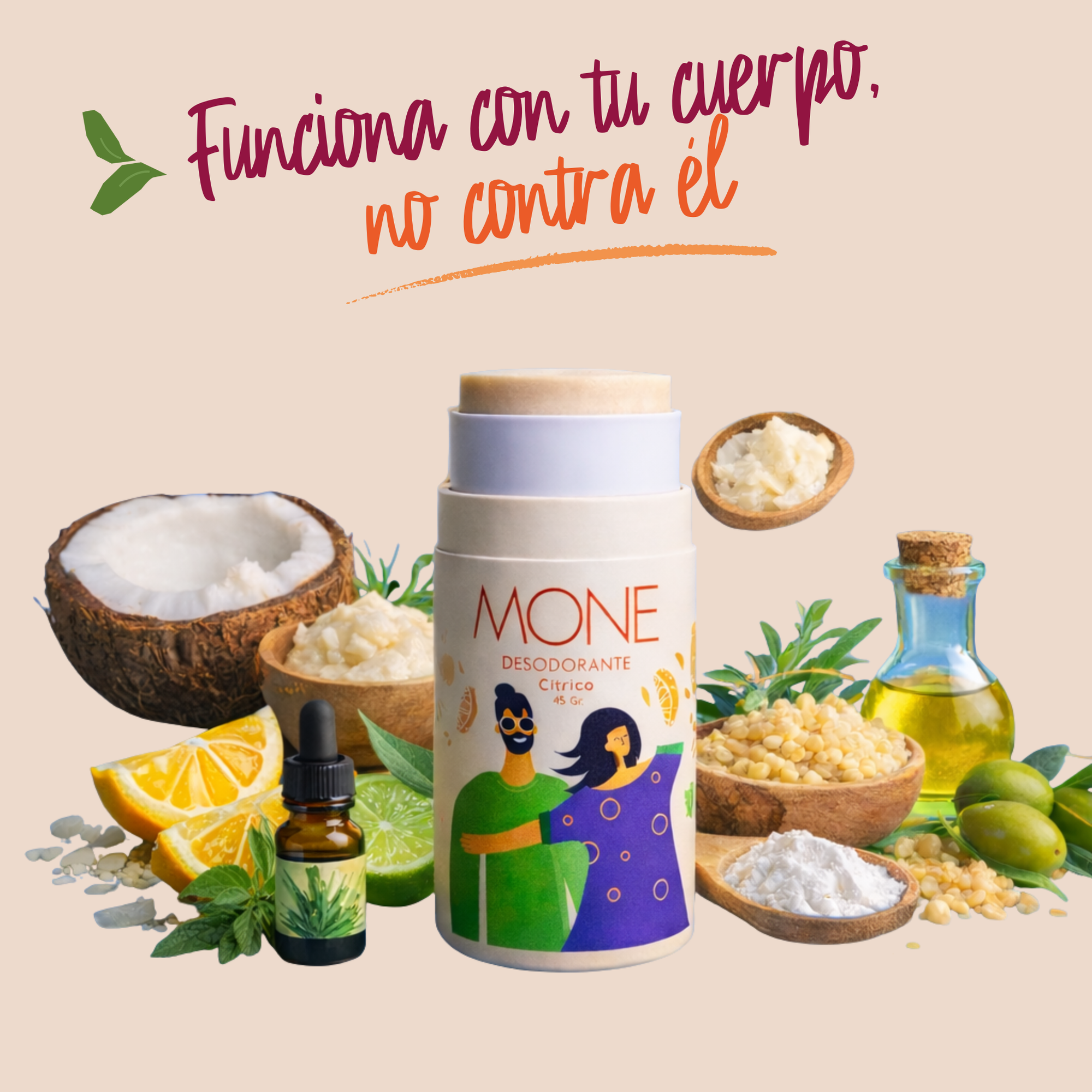 En MONE utilizamos una combinación de ingredientes que no solo neutralizan el olor, sino que también contribuyen a mantener la piel seca. No buscamos evitar que sudes porque sabemos que eso es algo positivo. Sin embargo, entendemos la necesidad de lidiar con la humedad, y es ahí donde nuestro desodorante puede marcar la diferencia al absorber el sudor de manera efectiva y natural”